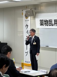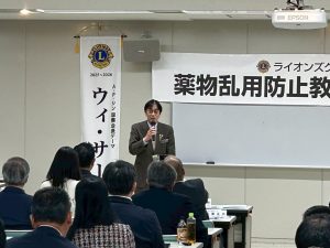 ライオンズクラブが開催する薬物乱用防止教室の社会的な重要性、最新の動向について講義があり
