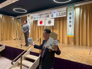 公式訪問では山﨑巌ガバナーに、スローガンの「尊重共存~会員拡大・奉仕の拡大」について、互いに認め合い、尊重しながら、共存、融和して取り組むべき。仲間同士で闊達に意見を出し合い高めあう中で理想の地区を目指していこうとのご挨拶をいただきました。